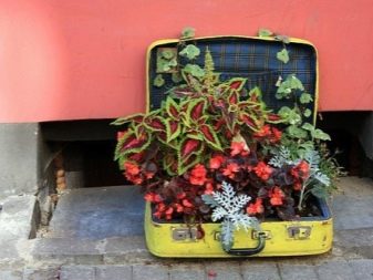 يستخدم العديد من سكان الصيف الشجعان مثل هذا الشيء القديم كحقيبة في تصميم حديقتهم. إذا كان لا يزال لديك حقيبة جدتك أو جدك العجوز ، فمن الممكن تمامًا صنع إناء زهور أصلي منها ، حيث ستشعر النباتات بالراحة..