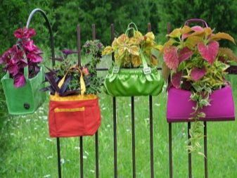 من أجل تفرد المنتج ، الذي سيصبح زخرفة حديقة ، تعتبر حقائب النساء المسنات مثالية: من الأفضل استخدام نماذج من الخوص والشاطئ. ليس عليك فعل أي شيء ، لأنهم أنفسهم يبدون أصليين تمامًا..