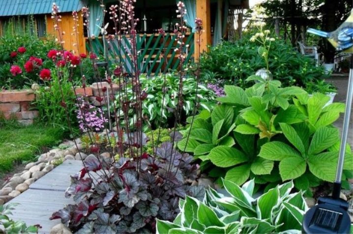 المحاصيل متوسطة الحجم التي تعيش في المناطق الظليلة كثيرة جدًا – ويحتل المضيفون مكانًا مهمًا بينهم. عند الوقوف أمام نباتات كبيرة الحجم ، ستُنظر إلى هذه النباتات جذابة للغاية ، وتتباهى بأوراق لامعة من جميع أنواع التكوين. تتمتع Hosta بأعلى الصفات الزخرفية للألوان الأبيض والأخضر والذهبي ؛ تربية متنوعة متنوعة, سوف تحتاج إلى تزويدها بمزيد من الإضاءة. الخيارات المثلى للتركيبات – القرمزية اليابانية ، نشرة حريش وغيرها من السراخس ذات الارتفاع المعتدل.