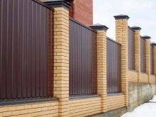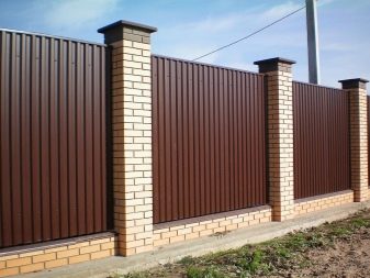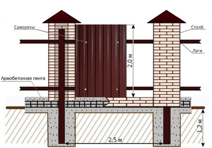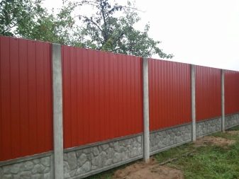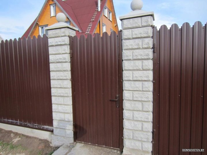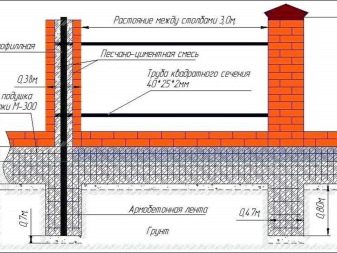 يقسم الخيار مع الأعمدة الورقة الكاملة للكرتون المضلع إلى أقسام. ويضيف الشريط العمودي ، بالإضافة إلى الأقسام ، أساسًا على طول القاعدة بأكملها من الأسفل. في كلتا الحالتين ، يمكنك استخدام الأسمنت والطوب. نوع الحجر الأساس هو الأغلى ثمناً ، ولكنه الأكثر موثوقية في نفس الوقت. ومع ذلك ، فإن الحاجة إلى مثل هذا السور تظهر فقط عندما يتم بناء السياج من مواد أثقل ، على سبيل المثال ، من الحديد المطاوع..