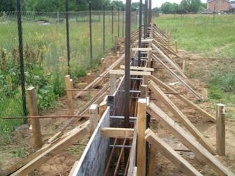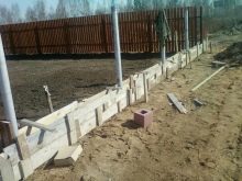 علاوة على ذلك ، يتم وضع الأوتاد في زوايا الدروع من أجل القوة. يجب تركيب القوالب بحوالي 30 سم فوق الحد المتوقع لحشو الأسمنت. إذا تم التخطيط لبناء السور بأعمدة ، فيجب أن يكون الأساس له بالضرورة متجانساً. هذا يضمن قوة ومتانة الهيكل. في هذه الحالة ، يجب ألا ننسى التركيبات..