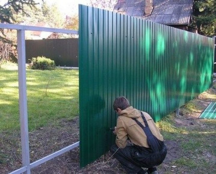 - تتطلب قواعد تثبيت الصفائح المعدنية اهتمامًا خاصًا.. إذا أهملتهم ونفذت التثبيت وفقًا لتقديرك الخاص ، فمن الممكن أن تفقد السياج قريبًا من حمولة الرياح. يتم توصيل برغي التنصت الذاتي بالتأخر عند المنعطف السفلي ، ولا يقوم بتوصيل الألواح من الأعلى. لا تشدهم بالكامل: يمكن أن ينزلقوا ويتلفوا السطح الخارجي للورقة الجانبية. الشيء الرئيسي هو إصلاح أول ورقة احترافية بشكل صحيح. يعتمد مظهر السياج بأكمله على هذا ، لأن كل ورقة لاحقة مرتبطة بالسابق.