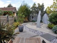 الحجر الطبيعي له أهمية كبيرة. الحجر له معنى فلسفي عميق وهو رمز للتصميم العرقي المميز. الحديقة بأكملها أو قسم منفصل منها مزين بالنباتات المناسبة. المسارات لها منحنيات ناعمة ، السطح مزين بالحصى والأنقاض والصخور المسطحة.
