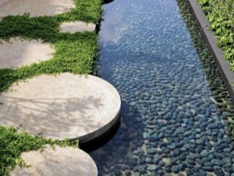 ممرات المشي مصنوعة من مواد خفيفة الوزن: خشب ، حجر رملي مع فترات من نباتات الغطاء الأرضي أو الرمل ، ألواح خرسانية من الفسيفساء. يمكن تغطية هذه المسارات بالحصى والرمل ولحاء الأشجار. يختلف عرض المسارات في المسافة من الاتصالات الرئيسية ويتم حسابها بناءً على حجم الموقع بالكامل. إذا أمكن ، من الضروري توفير عرض متر واحد للمشي معًا. لإضفاء لمسة من الغموض والرومانسية على زوايا الحديقة الخاصة ، يُسمح بعرض حجم البلاط القياسي من 35-50 سم ، نرحب هنا بأي شكل منحني ، مع التركيز على راحة التربة أو تقسيم الحديقة.