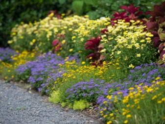 سيضيف استخدام الألوان ألوانًا نابضة بالحياة إلى فصلي الربيع والخريف. يتيح لك استخدام مادة ذات ظل واحد في الانتهاء من المسار إنشاء حديقة أحادية اللون. إذا كانت مزروعة بأزهار من نفس اللون ، فسيكون هناك مجمع فريد من النباتات وهياكل المناظر الطبيعية.