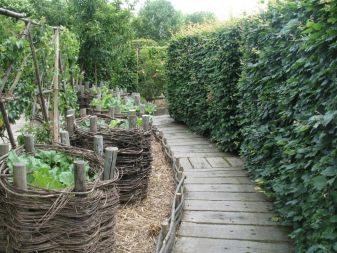 - يمكن إنشاء مسارات بعيدة من مواد ذات ميزانية أو مرتجلة ، على سبيل المثال ، تبدو المسارات المصنوعة من الفروع السميكة والخوصية مثل سياج الماعز مثيرة للاهتمام.