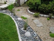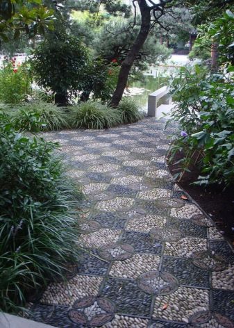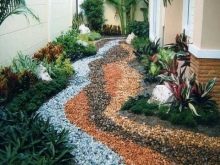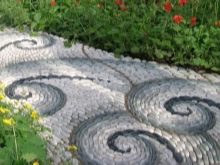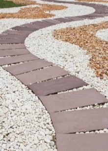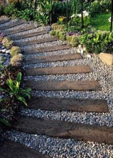 الممرات الناعمة على قطعة الأرض الشخصية مغطاة بالحصى والحجر المكسر. بالنسبة للمؤسسة ، يقومون بحفر خندق ضحل ، ودك القاع ، ووضع التكسية الأرضية وملء الأنقاض أو الحصى. من الأفضل تثبيت حواجز هنا حتى لا تنتشر الحصى الصغيرة في جميع أنحاء المنطقة. يبدو هذا النوع من المسارات مثيرًا للإعجاب بشكل خاص عند استخدام الحصى بألوان مختلفة..