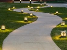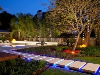 يبدو المسار المضاء أو المضاء من الخلف مذهلاً. الإضاءة الخلفية LED الحديثة آمنة. إنها تستهلك القليل من الطاقة ، وتخلق جوًا رومانسيًا للحديقة الليلية وتسمح لك بالسفر بأمان في جميع أنحاء الموقع. تتطلب الإضاءة كابلًا كهربائيًا. يتم وضعه على عمق آمن في خرطوم مموج خاص لحمايته من التلف..