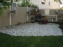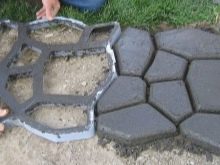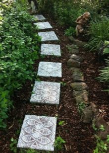 إذا كان هناك نقص في مواد التشطيب ، فإن الأمر يستحق صب الألواح الخرسانية الفردية. يجدر تحضير وسادة للقاعدة بالحجم ، وعمل قالب في الأرض وصب الخرسانة ، وسيبقى الجزء العلوي للتزيين حسب ذوقك وتوافر المواد. يعطي مزيج المواد تأثيرًا ممتازًا: هذه هي الطريقة التي يتم بها كسر رتابة مادة تشطيب واحدة. في نفس الوقت ، يتم الحفاظ على خصائص الأداء العالي..