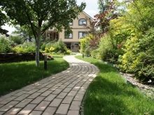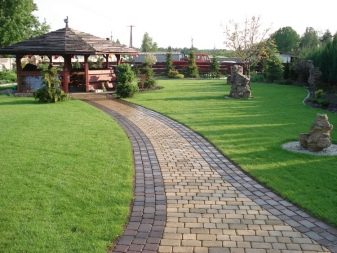 يمكن الجمع بين ممرات المشاة في البلد بشكل جميل من مواد مختلفة ، والشيء الرئيسي هو أنه من الضروري مراعاة النمط العام لتصميم الموقع.