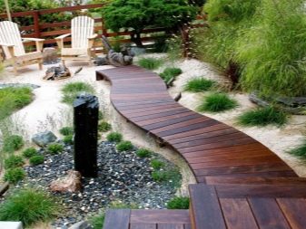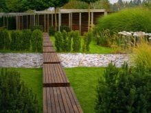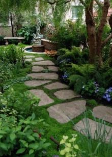 ممرات المشي مصنوعة من مواد خفيفة الوزن: خشب ، حجر رملي مع فترات من نباتات الغطاء الأرضي أو الرمل ، ألواح خرسانية من الفسيفساء. يمكن تغطية هذه المسارات بالحصى والرمل ولحاء الأشجار. يختلف عرض المسارات في المسافة من الاتصالات الرئيسية ويتم حسابها بناءً على حجم الموقع بالكامل. إذا أمكن ، من الضروري توفير عرض متر واحد للمشي معًا. لإضفاء لمسة من الغموض والرومانسية على زوايا الحديقة الخاصة ، يُسمح بعرض حجم البلاط القياسي من 35-50 سم ، نرحب هنا بأي شكل منحني ، مع التركيز على راحة التربة أو تقسيم الحديقة.
