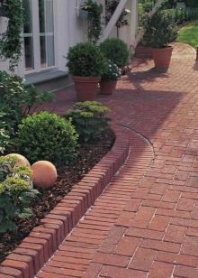 يمكن وضع خندق المسار بالطوب المتبقي من البناء. يجدر بنا أن نتذكر أن الطوب الأحمر عرضة للرطوبة. بعد بضع سنوات ، سيتعين استبداله بأخرى جديدة. يتم التحضير للوضع كسطح صلب..