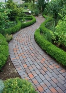 - في الحديقة الإنجليزية ، بجمالها الطبيعي ، لا يمكن الاستغناء عن ممرات من الطوب. تبدو متناغمة وسط أعمال شغب من الخضرة الصيفية والأزهار البرية مع لمسات زاهية من الورود ، محمية من أعين المتطفلين بواسطة تحوط كثيف من الصنوبريات دائمة الخضرة.