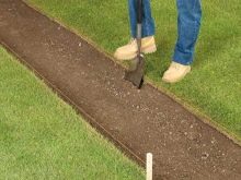 المرحلة الأولى من ترتيب المسارات هي تعليم المسار. للقيام بذلك ، قم برش ملامح المسار المستقبلي بالطباشير أو الرمل بطول الطول والعرض المطلوب. يتم تعيين العرض أكبر قليلاً من حجم المسار نفسه لتركيب القوالب أو كبح أو تثبيت نظام الصرف. مرة أخرى يدرسون المسار ، ويقيمون ملاءمة وكفاية عرض المسار. من المهم أن تأخذ في الاعتبار وجهة النظر التي تفتح من المسار ، والتفكير في المكان الذي سيمر فيه إمداد المياه والكابل الكهربائي.
