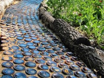 يمكن وضع النموذج الأصلي من أغطية زجاجات بلاستيكية متعددة الألوان إلى أسمنت لم يتم تقويته بعد. صحيح ، سيتعين عليك بذل جهد لجمعها. ومع ذلك ، ستكون النتيجة مذهلة وحصرية. إذا كان هناك نهر يتدفق في مكان قريب ، فيمكن وضع سطح المسار الخرساني بالحجارة أو الأصداف العارية.