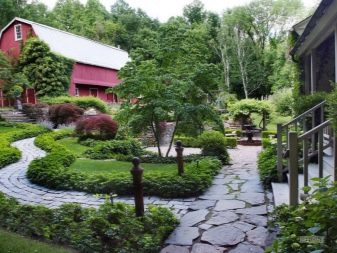 عند التخطيط لمسارات المشي ، عليك التأكد من أن المسار لا يصطدم بالسياج. إذا كان لا يمكن تجنب ذلك ، في نهاية المسار يرتبون بوابة زائفة ، قوس مع مقعد ، فراش زهرة. لا تخف من التضاريس على الموقع: الخطوات المصنوعة من الصخور الكبيرة أو العوارض الخرسانية تضيف سحرًا وسحرًا لتصميم المناظر الطبيعية. أحد التفاصيل المهمة هو التصميم التكنولوجي المختص للخطوات: يجب أن يكون المشي عليها مريحًا..