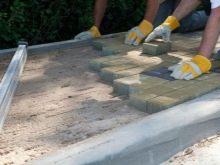 على الطبقة العلوية المضغوطة من الرمل ، يتم وضع الحجر أو البلاط أو الطوب وفقًا للمخطط المحدد. مع نقص الخبرة ، من الأفضل أولاً وضع جزء صغير من النموذج على الأرض ، ثم وضعه على القاعدة. يمكن وضع الألواح والأحجار المرصوفة وألواح الرصف على خليط الأسمنت والرمل أو الخرسانة. الطوب وأحجار الرصف – على الرمال.