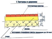 يتم اختيار التربة لعمق 25 سم ، ويتم حك قاع الخندق يدويًا أو ميكانيكيًا عن طريق الصدم الاهتزازي. بالنسبة للطريقة اليدوية ، يتم عمل دك خاص من سجل به قضيب عرضي مسمر بدلاً من المقابض. الجزء السفلي من الخندق مبطّن بتكسية أرضية لعزل الحشائش. تُسكب طبقة من الرمل (5 سم) ، بعد حشو طبقة من الحجر المكسر (من 5 إلى 10 سم) توضع عليها ، مبللة ومغطاة بالرمل.