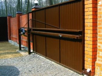 يكتمل التصميم بالكامل بمقبض فتح تقليدي. اتضح نسخة ميكانيكية. أيضًا ، يمكن ضبط البوابة باستخدام محركات كهربائية. هذا نوع تلقائي.