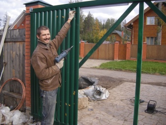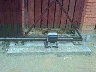 إذا أخذنا في الاعتبار تثبيت الهيكل ككل ، فإن أبسط خيار يتضمن منصة خرسانية متجانسة. يتم تثبيت الإطار والصمامات بين الدعامات. يتم تجميع إطار البوابة باللحام. يتم إرفاق لوح مموج به.