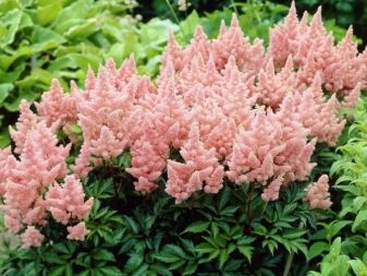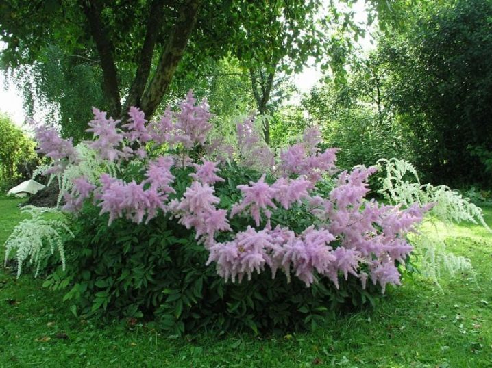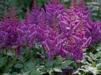 - أستيلبا. اعتمادًا على التنوع ، يمكن أن تختلف في حجم ولون الزهور. فترة الإزهار – حتى 10 أسابيع ، تنمو حتى في الظل.