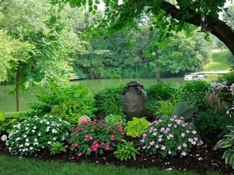 على سبيل المثال ، يمكنك أن تأخذ مثل هذه الواحة في ظل شجرة. يمكن أن يصل حجم حديقة الزهور هذه إلى 2 متر في 4 أمتار.. بالنسبة للواحة ، يمكنك التقاط النباتات التالية: