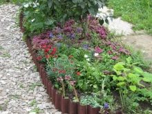 دعنا نتحدث بمزيد من التفاصيل عن سياج فراش الزهرة. يمكنك شراء سياج جاهز مصنوع من المعدن أو الخشب المطاوع. خيار آخر هو التحوط محلية الصنع. المنتجات من الحجر الزخرفية تبدو مذهلة. لا يختلف مبدأ التمديد عن بناء مسارات الحدائق.
