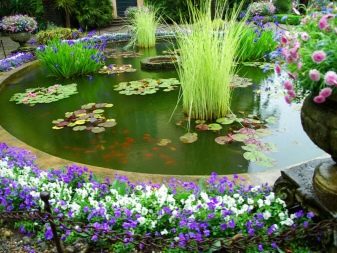 - حديقة زهرة الماء تم إنشاؤها بواسطة مزيج ناجح من النباتات المائية. يعد بناء حديقة الزهور أمرًا مهمًا في بناء خزان اصطناعي على أراضي الحديقة.