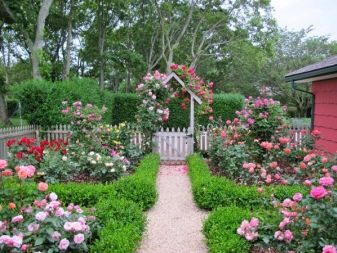 - حديقة الورود. غالبًا ما تزين الورود المنطقة الأمامية للحديقة. يجب أن تكون حديقة الزهور هذه في مكان دافئ ، فهي تحتاج إلى أشعة الشمس. في بعض المناطق ، يمكن عمل مزيج مثير للاهتمام من حديقة الورود. كإضافات ، تزرع الحبوب والصنوبريات والشجيرات وأنواع مختلفة من الشيح بحيث تزين هذه النسخة من حديقة الورود الحديقة على مدار العام..