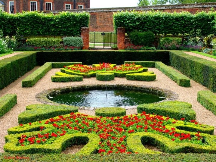 - حديقة نباتية زخرفية يشبه ظاهريًا حديقة نباتية عادية – أسرة مستقيمة صارمة بها حصى بينهما. لا تحتوي حديقة الزهور هذه على نباتات الزينة فحسب ، بل تحتوي أيضًا على حديقة.