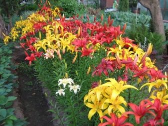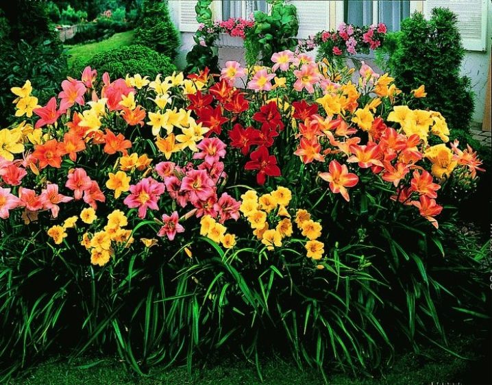 - زنبق النهار. يمكن صنع حديقة الزهور مع زنبق النهار في نسخة أحادية. تتيح لك وفرة الأصناف إنشاء تركيبة متناغمة.