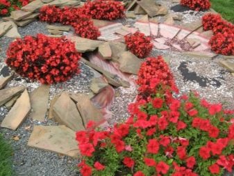أسرة زهرة المناظر الطبيعية ، بدورها ، تحاكي الأشكال الطبيعية غير الدقيقة. تعمل المواد الطبيعية كديكور إضافي: جذوع الأشجار الخشبية والأحجار. أنواع أسرة الزهور: