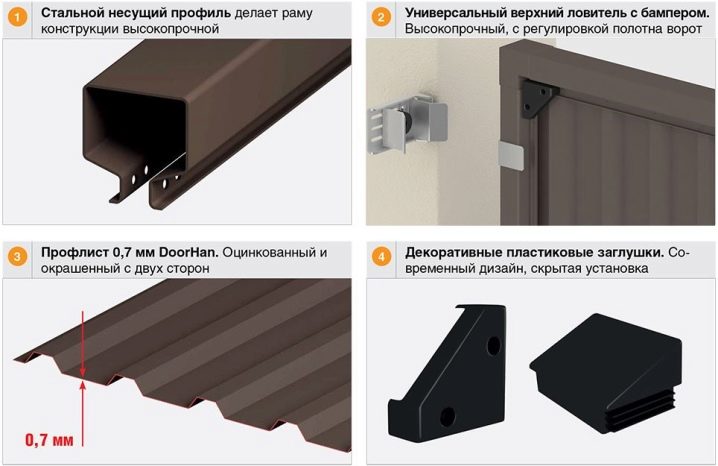 - محرك كهربائي. هذه الآلية هي الآلية الرئيسية ، لأنها تحرّك اللوحة القماشية. يتم تثبيتها على قاعدة خرسانية ، كما يتم استكمالها بأغطية واقية خاصة تمنع دخول الرطوبة والحطام. يمكن التحكم في بعض النماذج عن بعد ، مما يوفر العديد من المزايا ، مما يسمح باستبعاد شبه كامل للمشاركة البشرية في تشغيل البوابة..