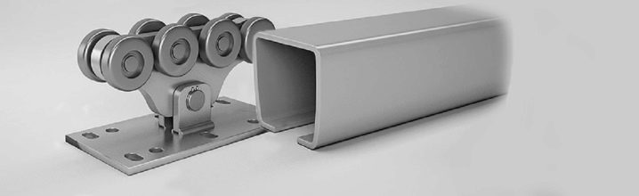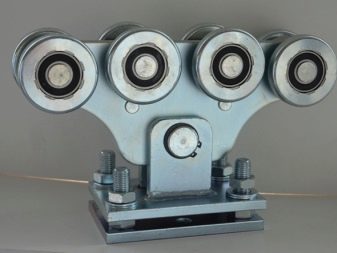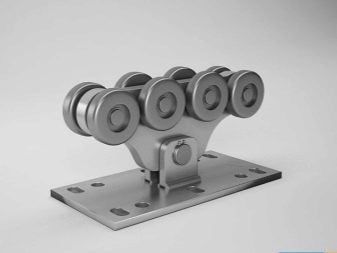 - عربة الأسطوانة. يتكون الهيكل من عدة بكرات دعم متصلة بالقناة. تتيح لك هذه المنتجات تحريك اللوحة على طول خط مستقيم. هناك عدة أنواع من العربات ، حيث يتم حسابها لوزن ويب معين. المادة الرئيسية هي المعدن ، لكن بعض الشركات المصنعة تستخدم بلاستيكًا خاصًا في تصنيعها..
