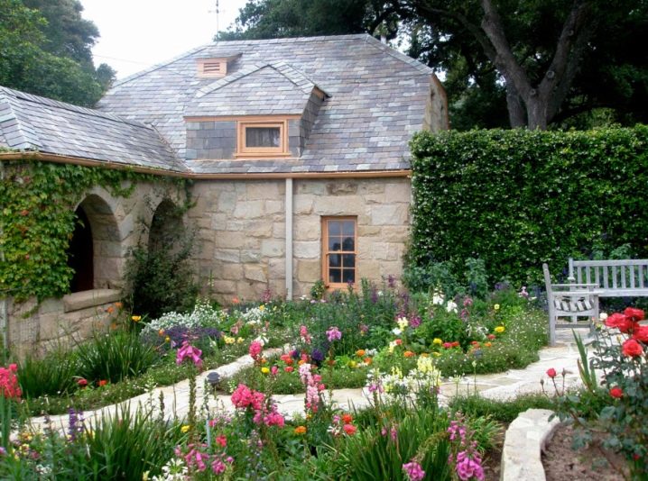 إذا كنت تحلم بالعيش في منزل حكاية خرافية ، فيمكنك إضافة قطرة من السحر إلى الحياة اليومية الرمادية من خلال بناء منزل منخفض من الحجر الفاتح وإحاطة به حديقة أنيقة بأزهار زاهية ومساحات خضراء مورقة. يقع بجانب المنزل شرفة المراقبة ، وهي محمية بشكل موثوق من الحرارة والمطر بواسطة السقف. تتشابك جدرانه مع نباتات التسلق الخضراء ، مما يضيف روعة إلى الموقع. تم العثور على مكان منفصل لمنطقة الترفيه. مقاعد وكراسي وطاولة مصنوعة من الخشب الفاتح تتناسب مع هذا المنظر الطبيعي الهادئ قدر الإمكان..