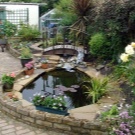 سوف تتناسب مع هذا النمط وبركة صغيرة. يمكن أن تكون أبعادها صغيرة جدًا ، والشيء الرئيسي هو أن الماء يتدفق بسلام ، ولا يضرب صعودًا بتيار ضيق.