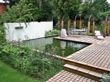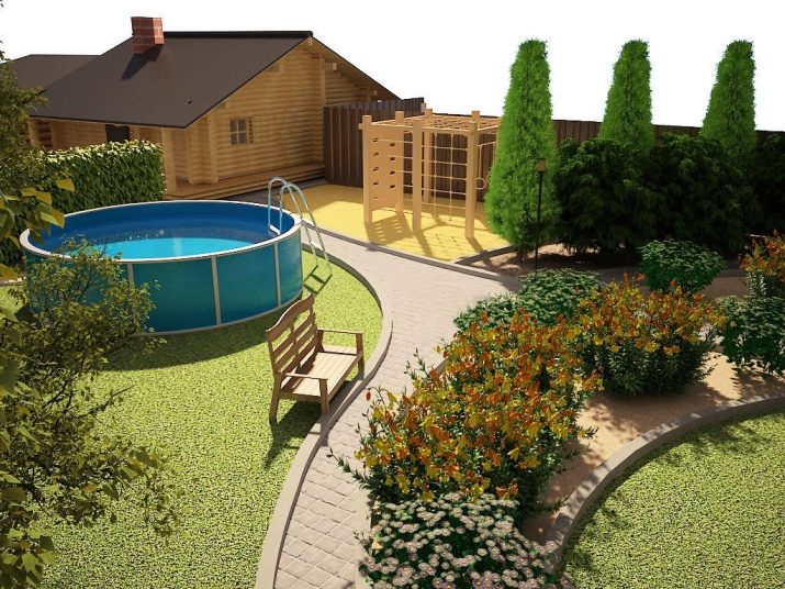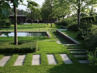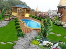 يمكنك ربط المناطق الترفيهية مكانيًا في منطقة صغيرة بمساعدة المسارات. ولكن من أجل التخلص من كفاف حاد للغاية ، لا توجد طريقة أفضل من ترتيب بركة ذات حدود تشبه الأمواج المتجمدة. هناك حيل أخرى تتعلق بالمناظر الطبيعية أيضًا ؛ لذلك ، في المروج حيث يستريحون ، يُنصح بوضع مروج مربعة ومستطيلة (على الرغم من أن أي هندسة صحيحة أخرى ستفعل).