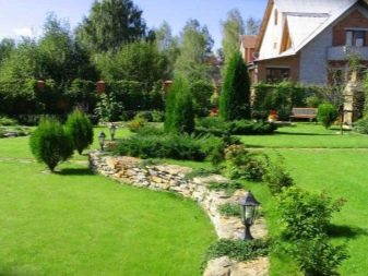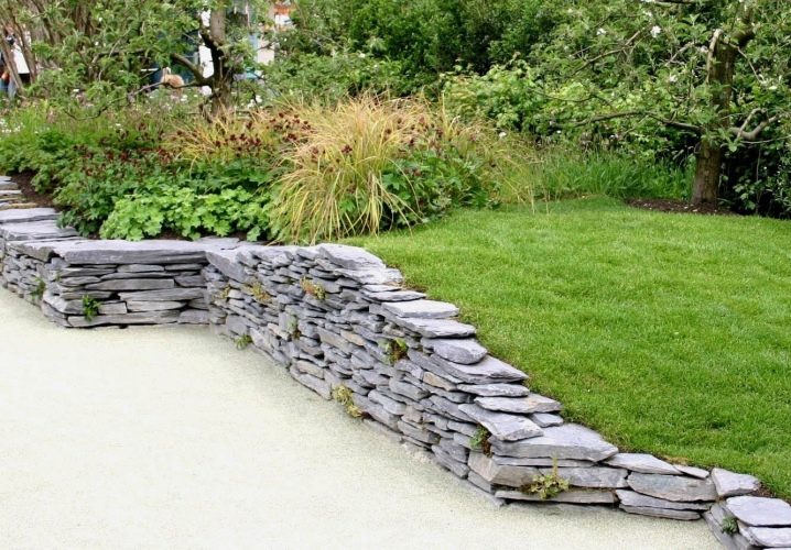 لكن لا يكفي حماية الحديقة من الانهيارات الأرضية ؛ بل يجب أيضًا أن تكون مخصصة بشكل جميل. وإليكم أحد أفضل الحلول: من ناحية ، يوجد عشب أخضر ناعم ، وعلى الجانب الآخر من خندق حصوي ضيق منحني بشكل غريب – سلسلة متنافرة من الشجيرات. خلفهم بالفعل نباتات ذات ظلال مختلفة من اللون الأخضر..