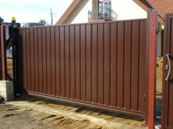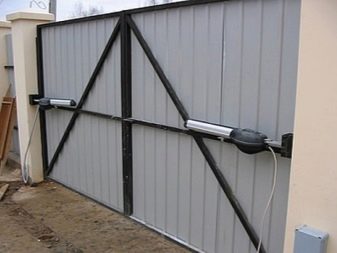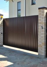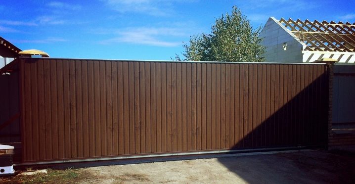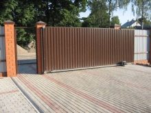 بوابات منزلقة تشبه الأبواب المنزلقة ، والفرق الوحيد هو في عدد الأبواب. وبالتالي ، فإن الانزلاق له لوحان, يجب أن يكون مكان التثبيت على جانبيها. لذلك ، تزداد كمية المواد ، ولكن هناك مساحة أقل عند السياج من جانب واحد..