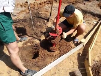 بالنسبة لهم ، يجب أن يكون هناك مكان متساوٍ في العمق – 1/3 ارتفاع الحامل. من الأسهل والأكثر اقتصادا القيام بذلك باستخدام مثقاب الحديقة ، يجب أن يكون ضعف قطر الأعمدة. يتم سكب خليط من الأنقاض والرمل بعمق 0.15-0.3 متر في الحفرة.