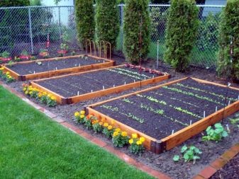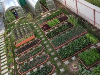 ليس من الضروري تخصيص قطعة أرض صلبة للحديقة. على العكس من ذلك ، سيكون من الأفضل أن تفعل الشيء نفسه تمامًا كما هو الحال مع أسرة الزهور – قسّم المنطقة إلى عدة مربعات متطابقة وقم بتسييجها عن بعضها البعض بالحجارة أو الأسوار المنخفضة والممرات الضيقة. يبدو أكثر إرضاء من الناحية الجمالية ، ومن الأسهل بكثير العناية بهذه الأسرة. في المربعات الأنيقة ، يمكنك زراعة الخيار الأخضر ، والطماطم الغنية بالعصير ، والكزبرة ، والريحان ، وما إلى ذلك. يوصى بتخصيص المنطقة الأكثر إضاءة بالشمس تحت الأسرة..