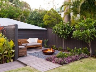 - المواد. أما بالنسبة للمواد ، فأنت هنا بحاجة إلى الخشب والحجر. هم أبسط وأقرب إلى الطبيعة. يمكنك أيضًا تزيين المنطقة بأسوار أو أثاث من الخيزران. على سبيل المثال ، ضع مثل هذا الكرسي الهزاز أو عدة كراسي في منطقة الاستجمام.