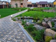 يجب فصل جميع المناطق عن بعضها البعض ليس فقط بصريًا ، ولكن أيضًا بمساعدة الحجارة, الأسوار أو حتى التحوطات. الطريقة الأكثر عملية هي تزيين المسارات برشها بالحصى الناعم أو بقايا الخشب. من ناحية ، ستحصل على مسارات مريحة يسعد السير على طولها ، ومن ناحية أخرى ، ستحصل على تفاصيل جميلة تكمل موقعك.