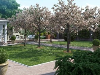 بعد إنشاء خلفية زهرية زاهية على موقعك ، يمكنك المتابعة إلى زراعة الأشجار. يفضل معظم أصحاب العمل الدؤوب عدم اختيار أشجار الزينة ، بل أشجار الفاكهة لموقعهم من أجل الحصول على أقصى فائدة.