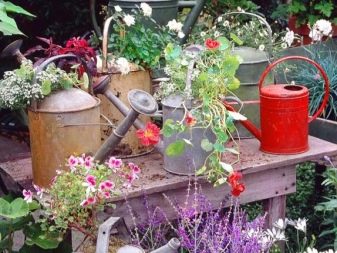 يمكن تزيين ساحات الفناء الريفية الخاصة بكل ما يأتي في طريقك. هذا مفيد وعملي. لن تنفق روبل واحد على هذا الديكور. لتزيين المنطقة المجاورة للمنزل ، يمكنك استخدام العربات القديمة أو العجلات أو عربات اليد الخشبية التي لم يعد من الممكن استخدامها للغرض المقصود منها أو حتى الدلاء وعلب الري. يمكن وضعها وتعليقها حول الموقع أو حتى استخدامها كأحواض زهور مرتجلة ، مملوءة بالأرض والزهور.