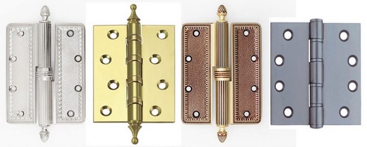 يجب ألا ننسى ذلك يجب أن تتمتع المفصلات بجماليات وأن تتناسب مع تصميم المنتج بأكمله. يولي المصنعون اهتمامًا خاصًا لقابلية العرض ، بحيث يمكنك العثور على نماذج جميلة بنقوش وعناصر تزوير. بالإضافة إلى ذلك ، يمكن أن تكون مربعة أو أسطوانية أو سداسية..