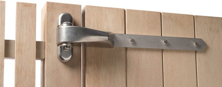 المهم هو الخامة التي تصنع منها الوشاح ، لأنها يمكن أن تكون خشبية ومعدنية ومزينة بألواح مختلفة مما يؤثر على وزنها. إذا كانت البوابة كبيرة الحجم ، فستحتاج إلى مفصلات يمكنها تحمل الأحمال الثقيلة. خلاف ذلك ، سوف يفشلون في المستقبل القريب ، وسيتعين عليك التعامل مع استبدالهم..