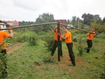 ثم يمكنك البدء في شد الأنابيب. يجب أن يتم ذلك بمساعدة ذراع خاص ، يتم من أجل إنشائه إدخال حديد التسليح بقطر 3 سم في الفتحة التكنولوجية الموجودة في الطرف العلوي من الأنبوب. يتم وضع القسم ، والذي سيكون بمثابة رافعة.