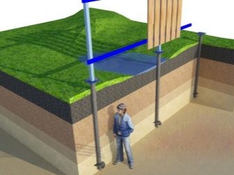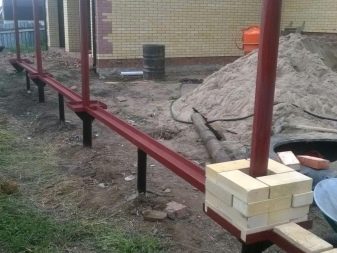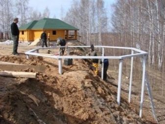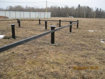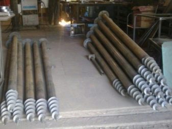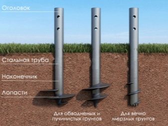 ركائز لولبية مثبتة في الأرض تحت مستوى تجميد التربة. يتم التثبيت بخطوة معينة تساوي طول مقطع واحد. فوقهم ، يتم تثبيت الأعمدة ، حيث يتم وضع الحشوة. غالبًا ما يتم استخدام أنابيب ذات قطر أصغر قليلاً ، حيث يتم إدخالها في تجويف الكومة وتثبيتها بإحكام..