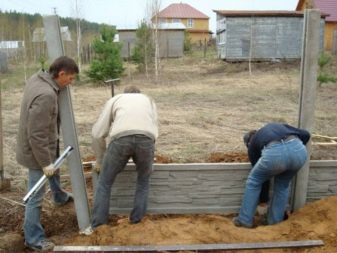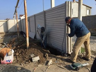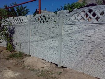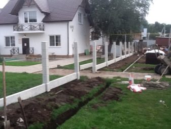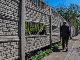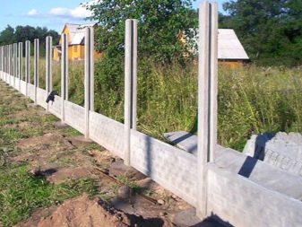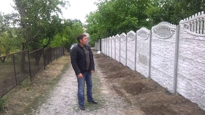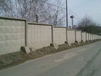 لا تبدو هذه الأسوار أنيقة للغاية – لا توجد جماليات وإبداع ، لكن التثبيت بسيط للغاية: يكفي طلب الدفعة المطلوبة من منتجات الخرسانة المسلحة وتثبيتها على قاعدة شريطية مصبوبة مسطحة باستخدام رافعة إنشائية.